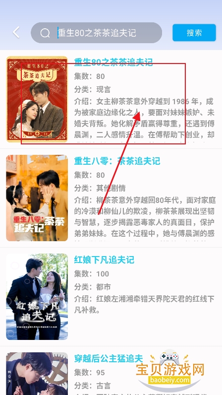 5、根据搜索结果,进入喜欢的短剧