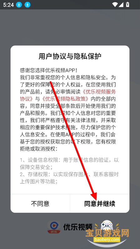 1、在宝贝游戏网下载安装,点击同意并继续进入