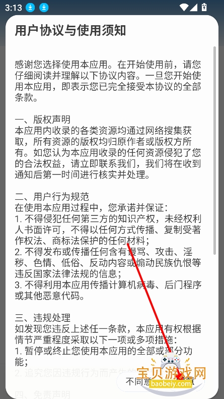 1、在宝贝游戏网下载安装绅士工具箱手机版,点击“同意”进入