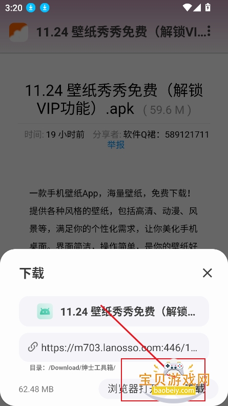 7、然后选择下载方式,支持浏览器下载,或者直接下载