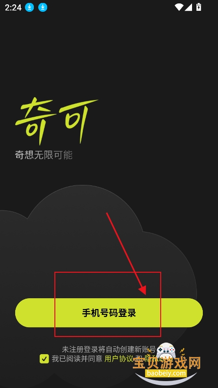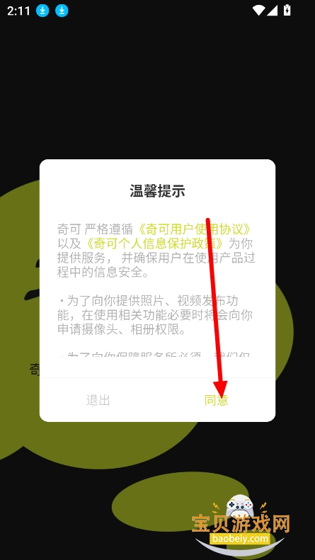 1、在宝贝游戏网下载安装奇可app手机版,点击同意进入