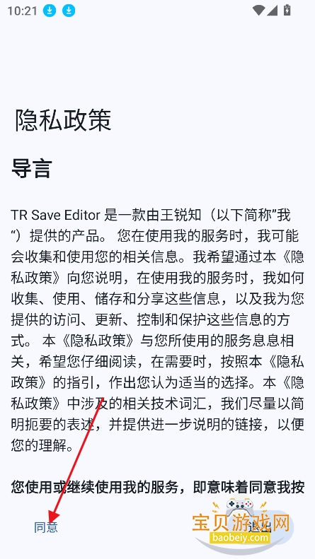 1、在宝贝游戏网下载安装泰拉瑞亚存档转换器手机版,点击“同意”进入