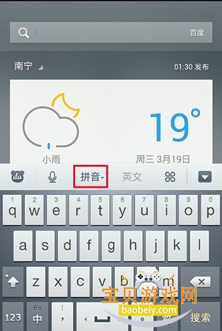 2、点击某个可以输入文字的地方,见到如下图1所示,点击输入法上面的按键“拼音”(小编将手机输入默认为键盘输入)。
