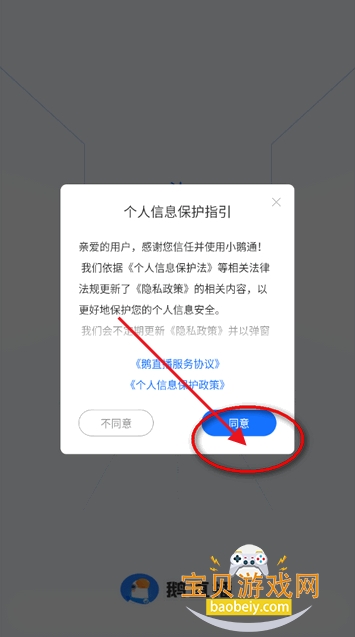1、在宝贝游戏网下载安装鹅直播app免费版,点击“同意”进入