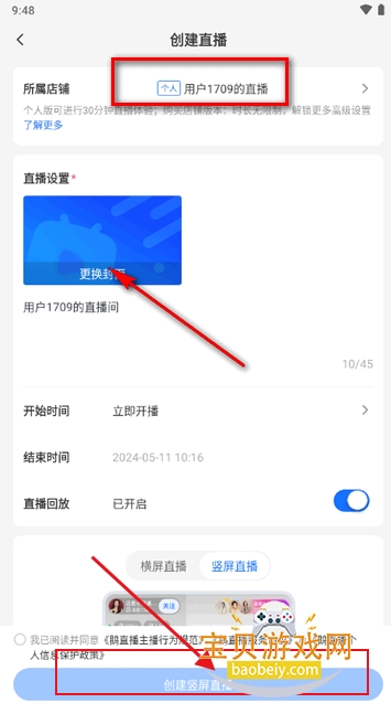 1、点击创建直播进入,里面参数等都可以进行修改,修改设置完成,点击下方创建直播
