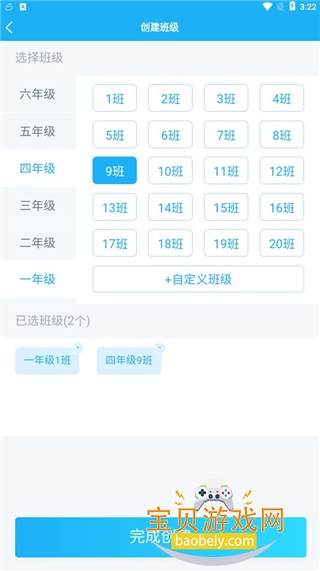 4、选择自己所带的班级,然后点击完成创建。