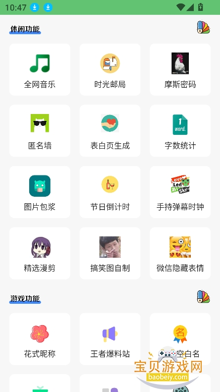6、往下浏览,还有超多休闲功能,游戏功能,都可以直接使用,无需另外跳转界面