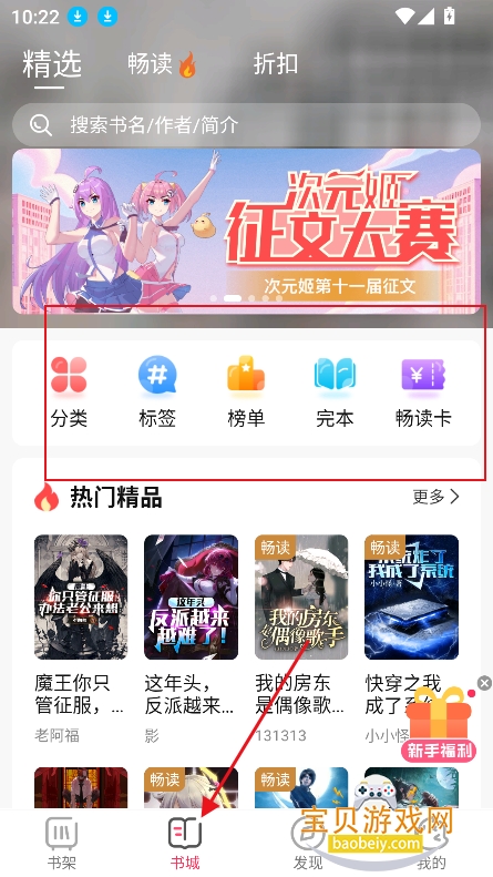 1、进入“书城”界面,提供超多小说,漫画等阅读内容