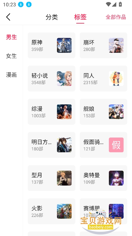 3、点击标签进入,可以根据关键词标签少选喜欢的小说