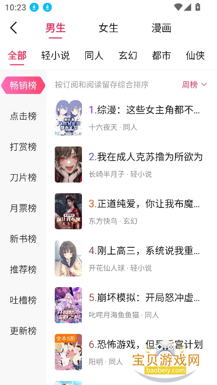 4、点击榜单进入,还有人气榜单,新书榜单,等等榜单可以筛选