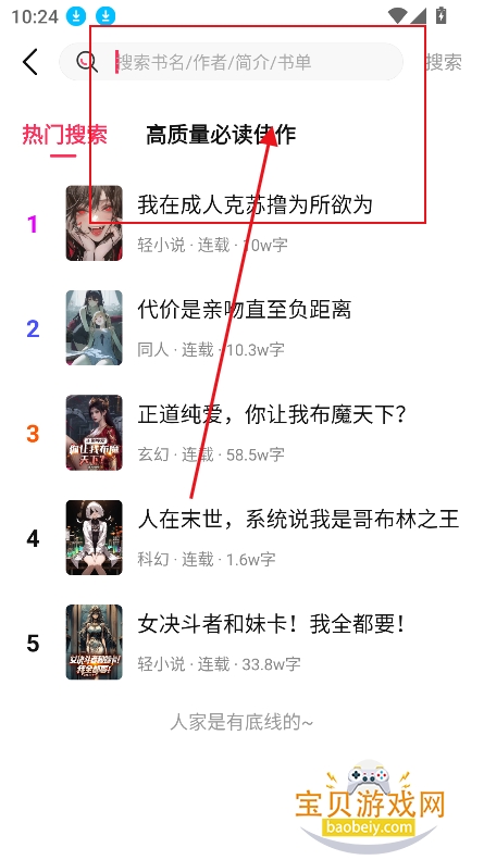 5、或者直接搜索框搜索书名,书单,以及作者等,精准检索小说书籍等