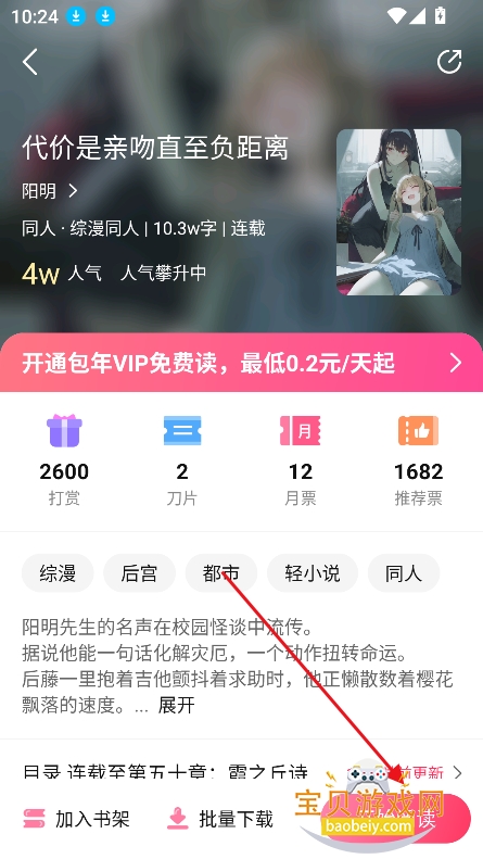 A:注册登录后,进入作品详情页开启“更新提醒”,作品更新时会第一时间收到推送通知,同时平台也会优先推荐大神新作。