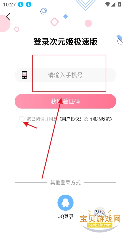 3、然后进入登录界面,输入手机号验证登录即可,新手机号自动注册为新账号哦