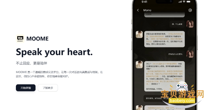 1.情感优先于功能:区别于工具型AI的“问题解决导向”,MOOME以“情感满足”为核心目标,不追求高效的信息输出,而是专注于让用户在对话中获得被理解、被接纳的心理体验,填补情感陪伴的空白。