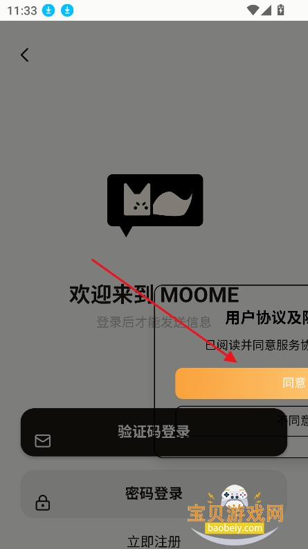 2、点击“同意”