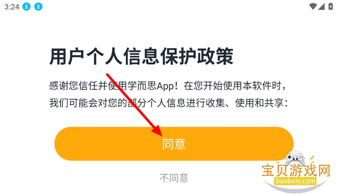 在宝贝游戏网下载安装学而思培优hd安卓版,点击“同意”进入