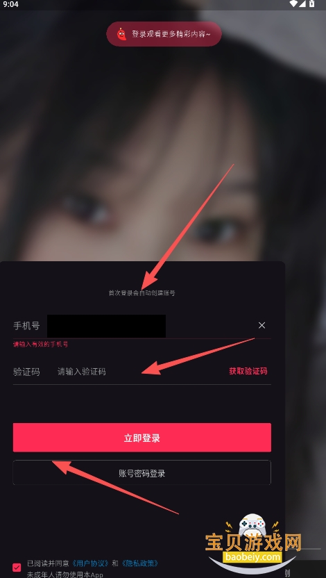 2、输入有效手机号码并填写短信验证码完成注册登录。