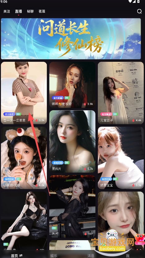 4、关注以后来到首页,选择你喜欢的主播类型点击免费观看。