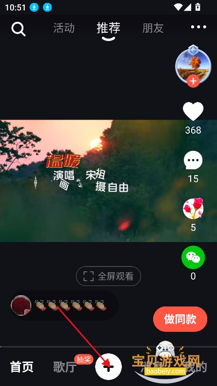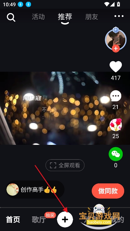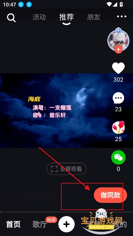 1、进入首页,可以上下切换,筛选喜欢的视频内容,点击右下角制作同款