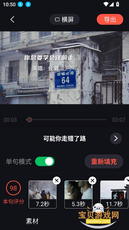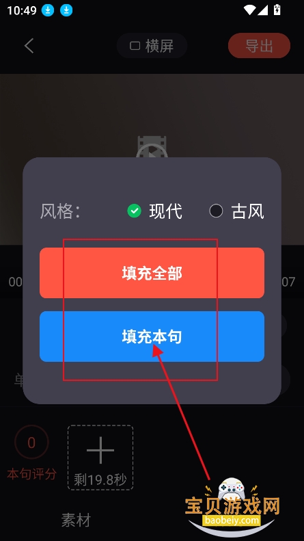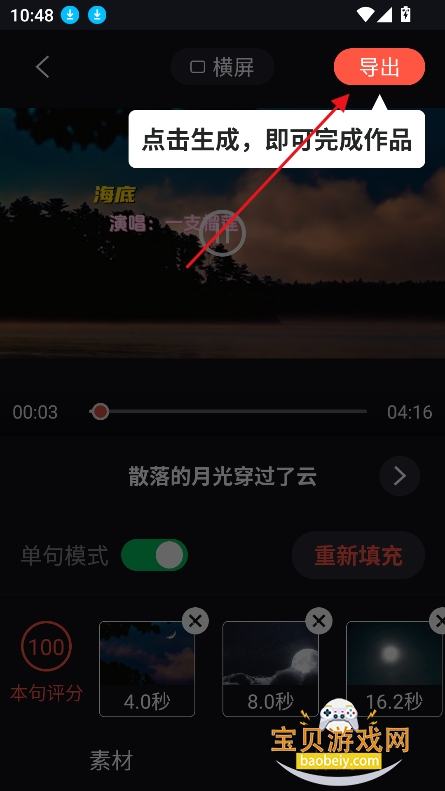 4、等待素材填充完毕,点击右上角导出就可以制作成功,保存到本地了
