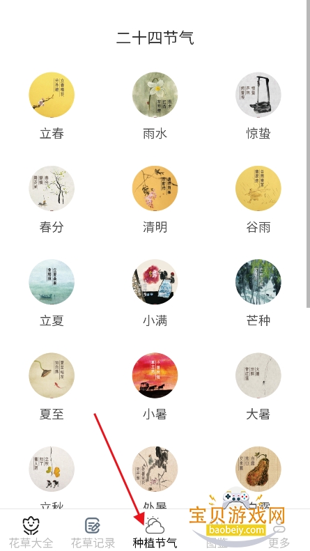 3、进入种植节气,可以查看全部节气,以及适合种植的植物
