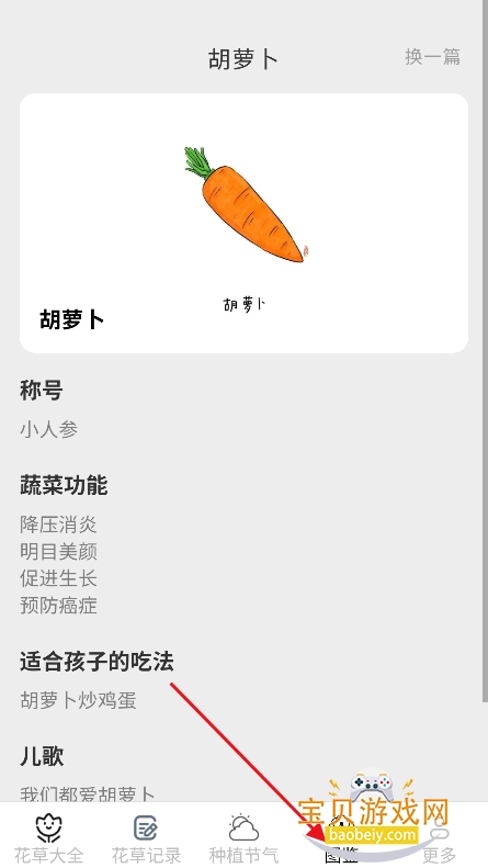 4、进入图鉴,可以通过图文的方式,带大家查看各种花草蔬果等