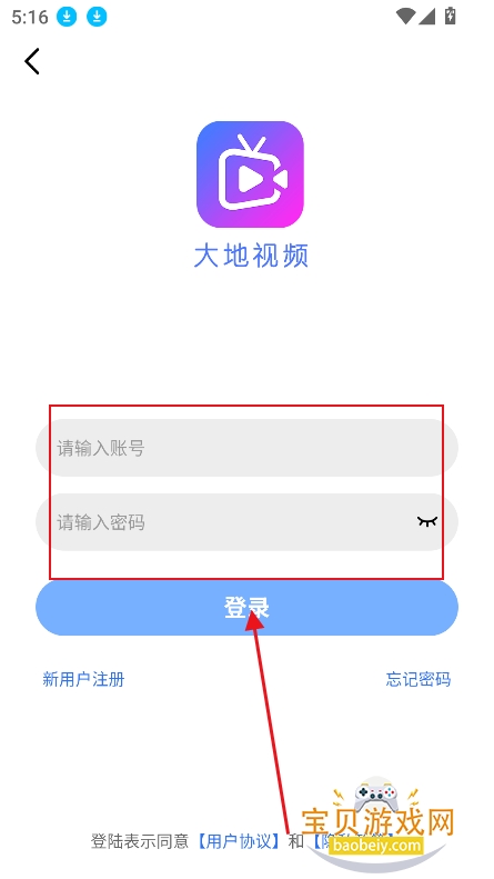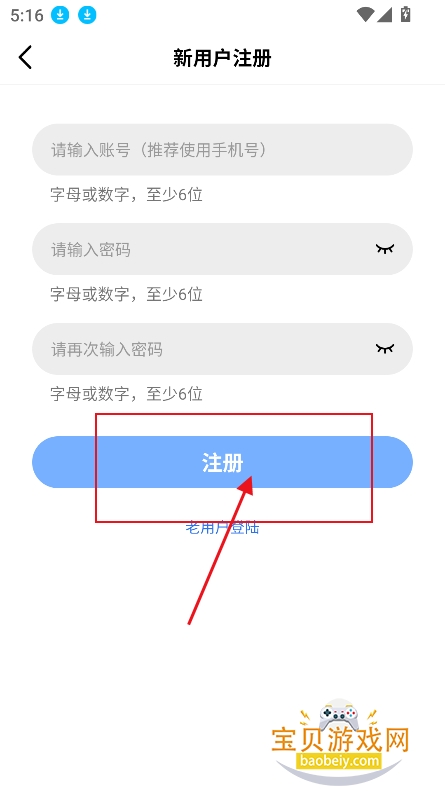 3、新用户,直接点击新用户注册,进入注册界面,输入信息完成注册