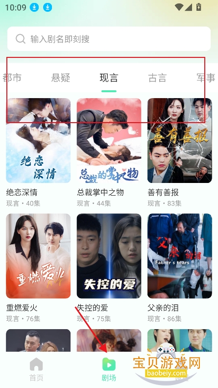 3、或者进入剧场板块,筛选短剧类型,题材等