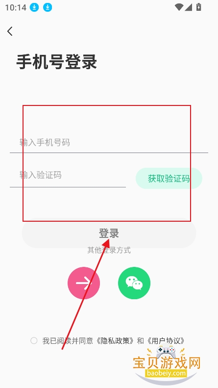 1、进入登录界面,直接输入手机号接收验证,就可以登录成功,新手机号自动注册
