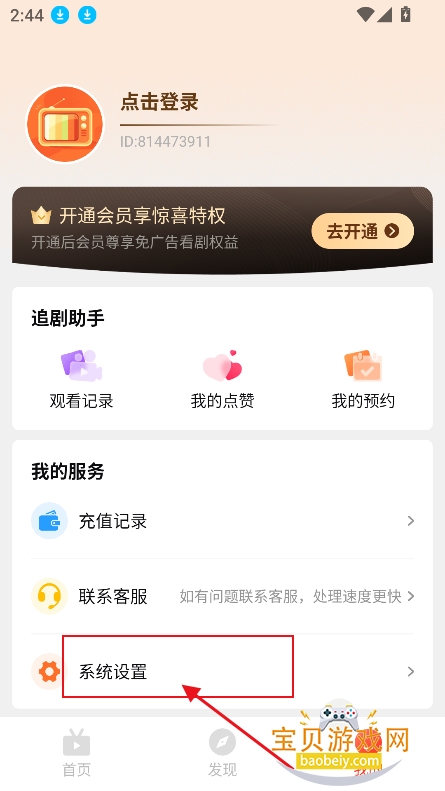1、进入我的界面,点击系统设置