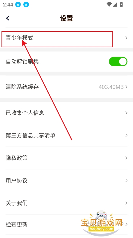 2、点击“青少年模式”