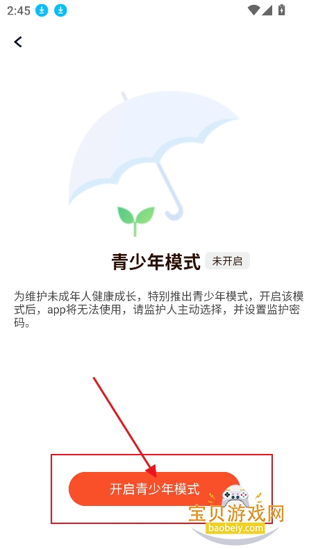 3、点击开启青少年模式