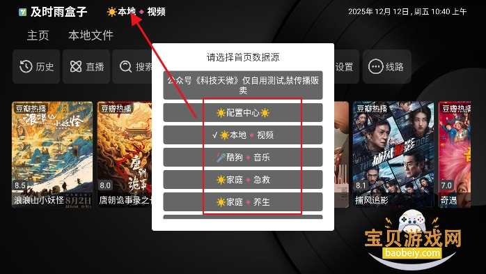 2、系统会自动弹窗多台哦tvbox线路,大家可以任意勾选你喜欢的影音线路