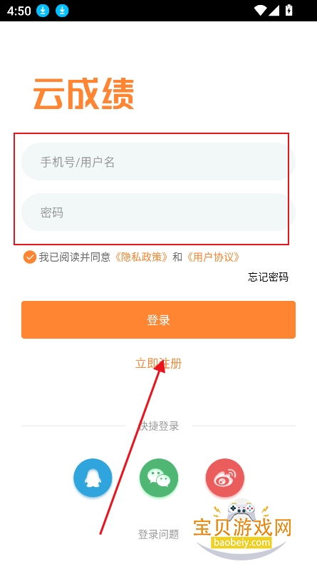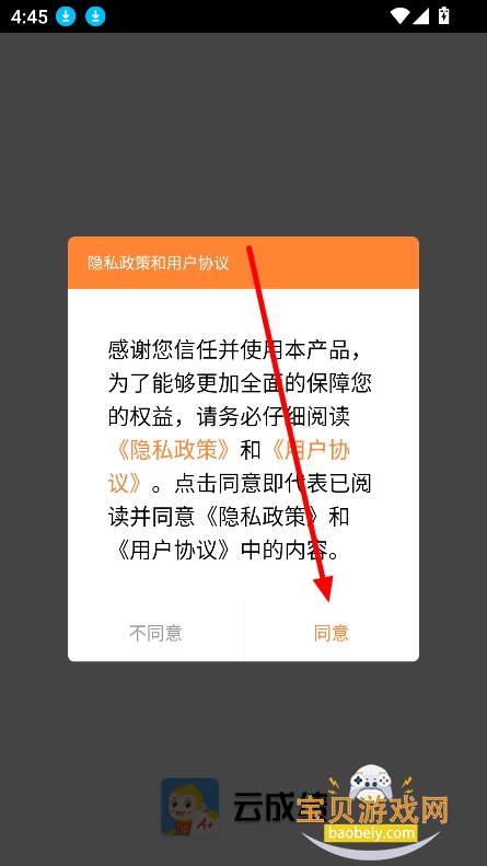 1、在宝贝游戏网下载安装云成绩app官方版,点击同意进入