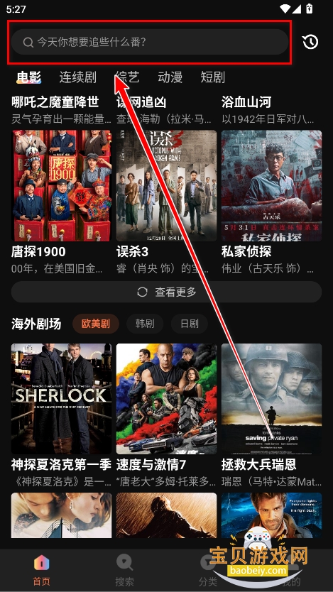 1、进入首页,可以首先筛选观看类型,切换喜欢的影视板块