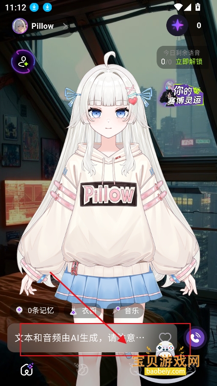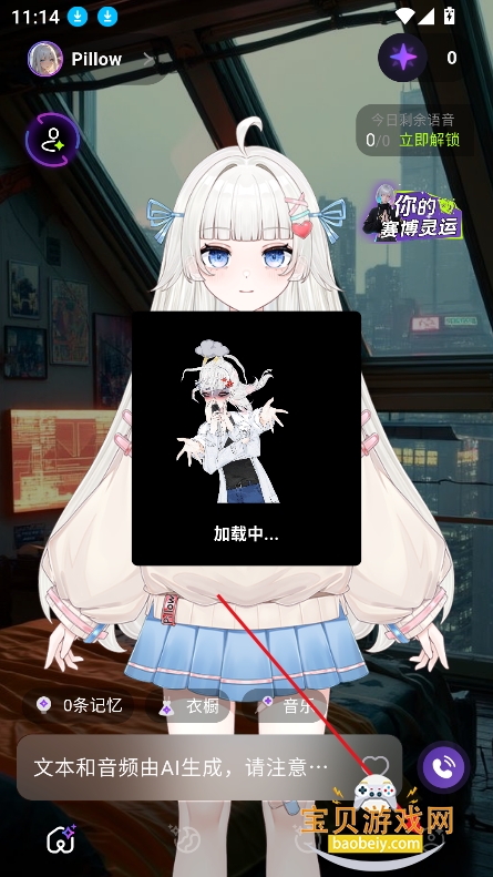 依托先进的AI交互技术,Pillow具备自然的语言理解与情感表达能力,避免机械生硬的回复。她能记住用户的偏好与互动细节,例如记住用户喜欢的歌曲风格、常聊的话题,让互动更具温度,增强用户与虚拟角色的情感联结。
