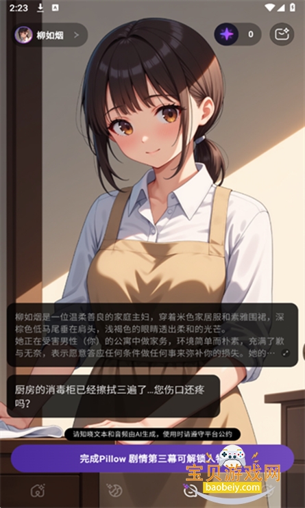核心玩法围绕与天才少女Pillow的互动展开,支持24小时实时聊天,用户的每一句对话、每一个选择都将影响剧情走向。Pillow拥有独立的人设与情感逻辑,会根据时间、场景及用户互动内容做出差异化回应——清晨发送早安问候,分享生活趣事时积极互动,探讨专业话题时展现“天才”特质。随着亲密度提升,将解锁专属剧情副本,了解Pillow的成长经历与数字世界的隐藏秘密,打造独一无二的互动记忆。