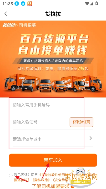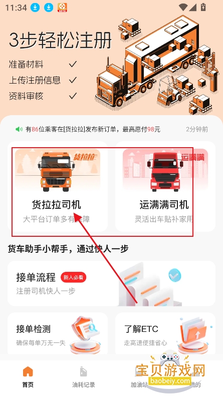 进入首页,选择你需要入驻的平台,支持货拉拉司机,以及运满满司机,