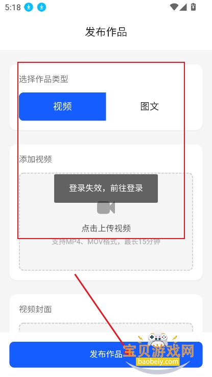 2、选择视频,或者图文等,上传影像,以及封面等,点击发布作品