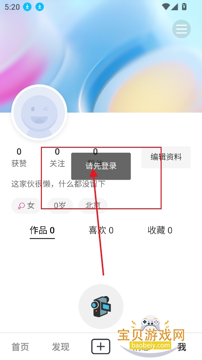 1、进入我的界面,点击请先登录