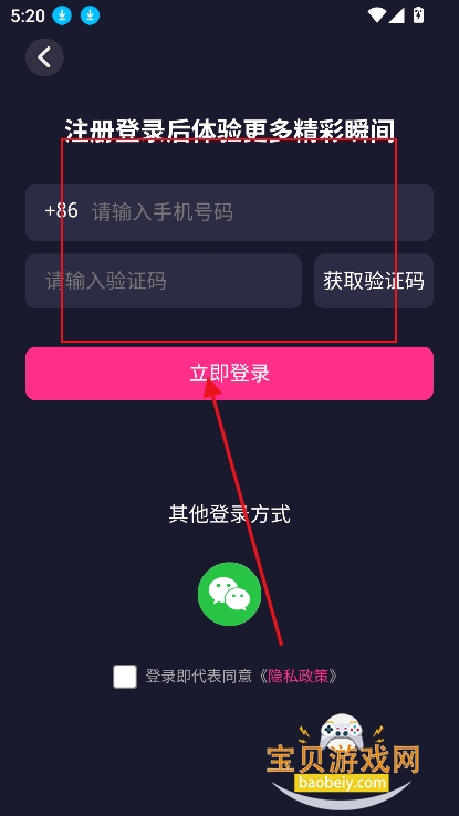 2、进入登录界面,输入手机号接收验证,就可以登录成功,新手机号自动注册账号