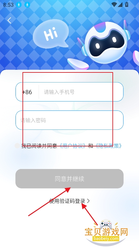 3、例如进入登录界面,可以输入账号密码登录,或者手机号验证的方式登录,任意选择一种即可