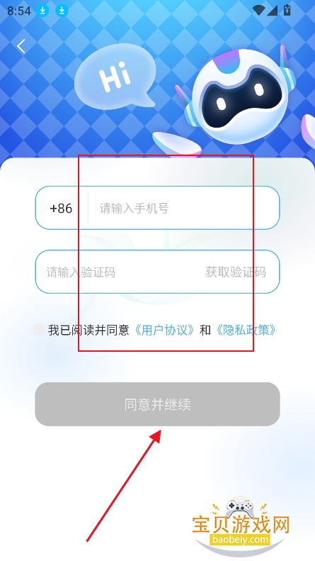 1、在宝贝游戏网下载安装小小ai聊天软件,点击“同意”进入