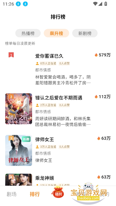 4、可以根据榜单排行,查看近期热门的短剧