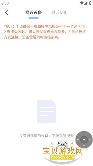 2、点击一键设备投屏处的连接设备,就会出现以下界面;在此页面寻找想要投屏的设备即可完成投屏,非常便捷;