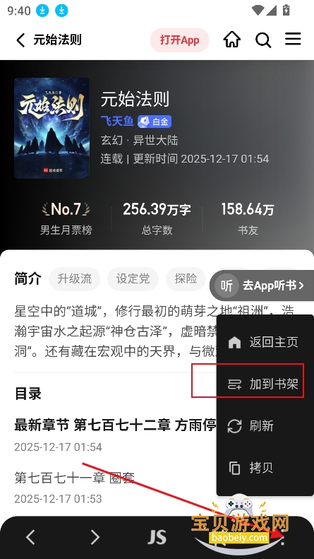 5、点击右下角三点,可以讲该网页加入书架,方便下次继续阅读