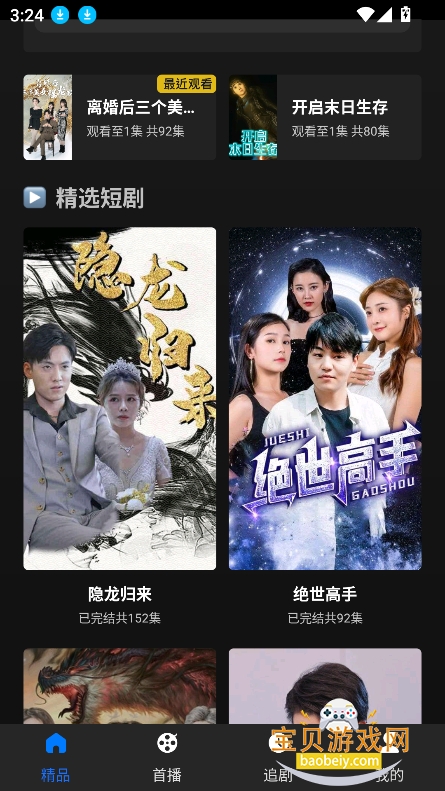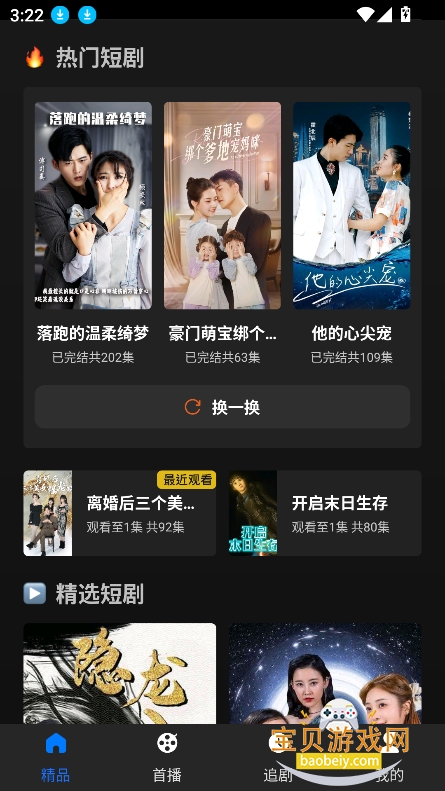 1、进入主页,可以根据系统推荐的精选短剧进行筛选