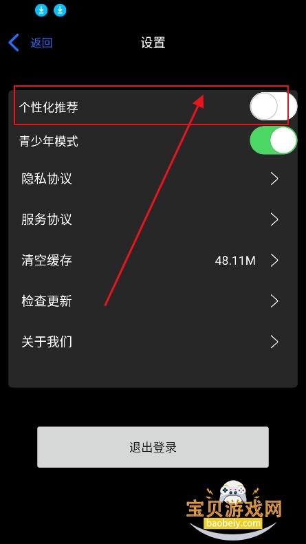 在设置界面,关闭“个性化推荐,就可以减少广告推荐了