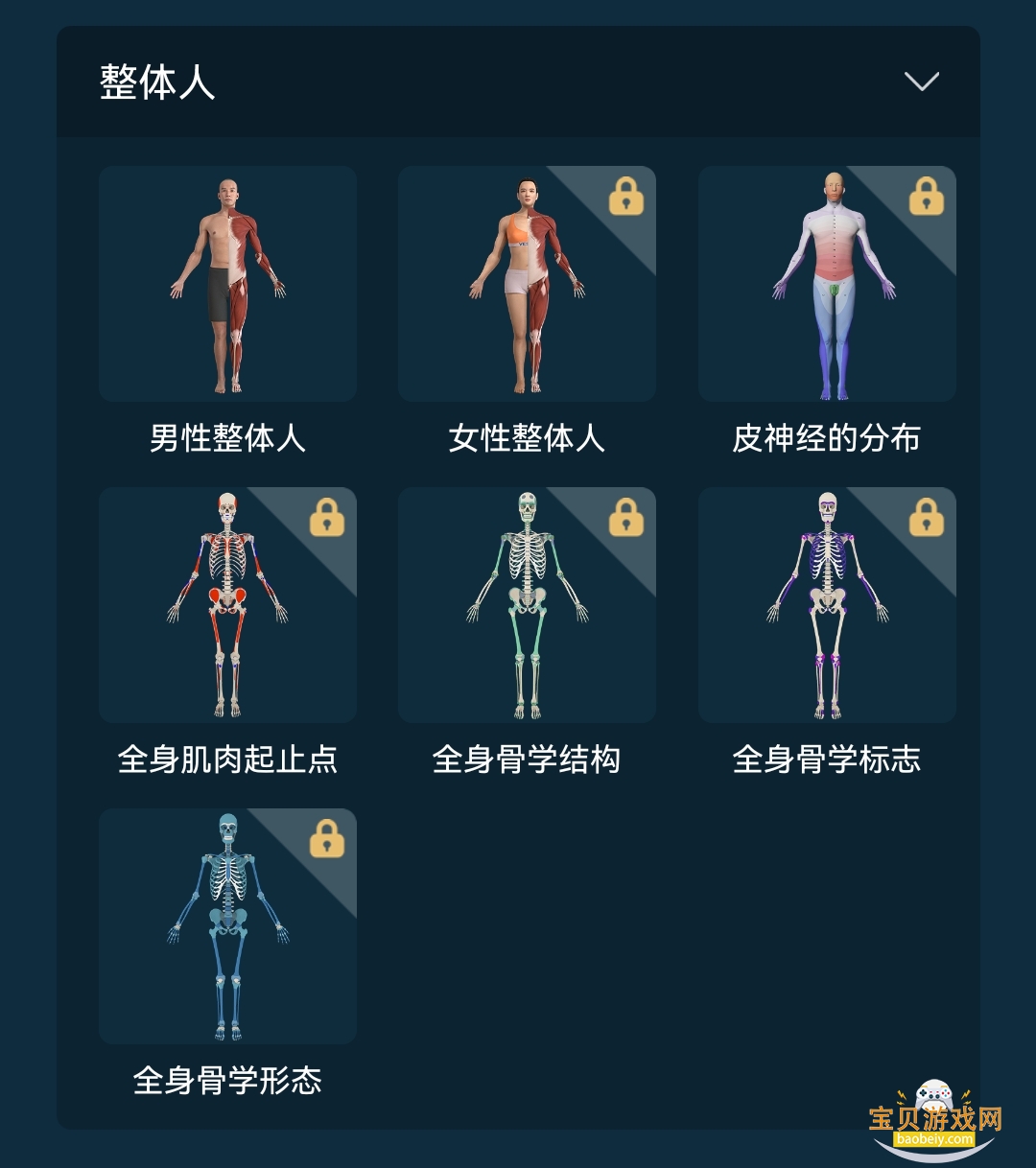 整体人是解剖大师3D人体虚拟解剖软件最强大的资源;男女整体人,各包括解剖结构15000+;包括皮神经分布、全身肌肉起止点、全身骨学结构、骨学标志、骨学形态;通过解剖大师隐藏,单选,多选,缩放,切割,旋转等功能,学习者可以充分了解人体的解剖奥秘。