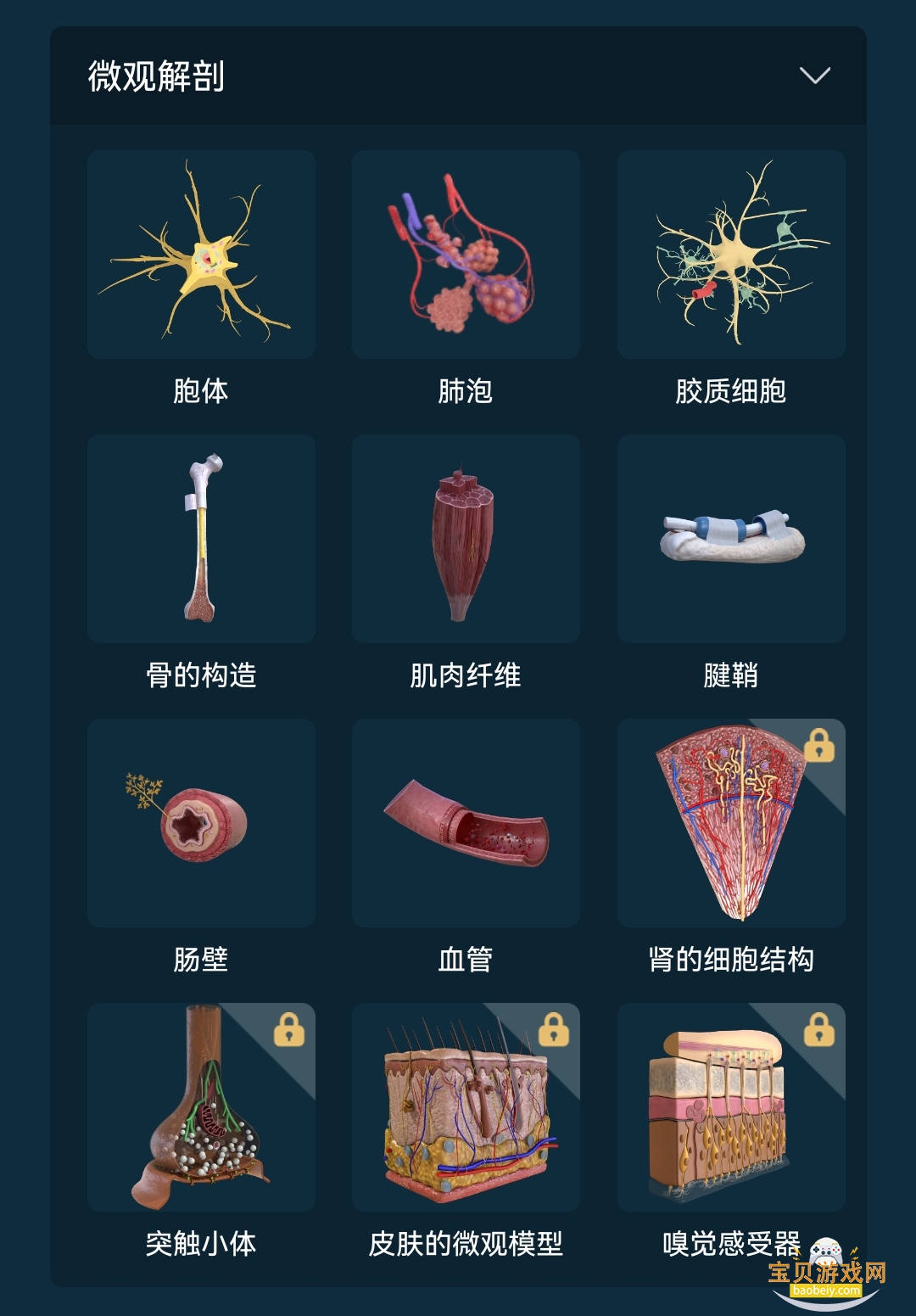 4.微观结构可视化:提供细胞胞体、肺泡、肌肉纤维等微观3D模型,突破教材限制,辅助理解人体结构。
